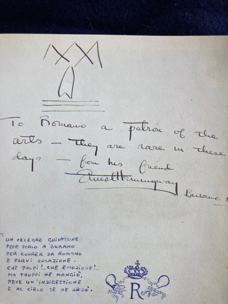 Da Romano inspired the late Anthony Bourdain – Celebrity-Chef / food critic/broadcaster – who considered their rice preparations to be simply the “ finest in existence “. They also keep a collection of works by local artists , as well as an appreciative note from steady visitor Ernest Hemingway in the late 1950’s.